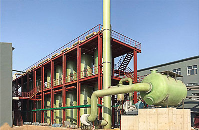 本套系统是专门处理各行业产生的氮氧化物气体的装置。处理方式为先将氮氧化物吸收为稀硝酸,没有吸收成硝酸的尾气经湿法喷淋与干式吸附后排放,达到《大气污染物综合排放标准》中要求的排放标准。如果风量大浓度低没有回收硝酸价值时,我们仅做处理即可。